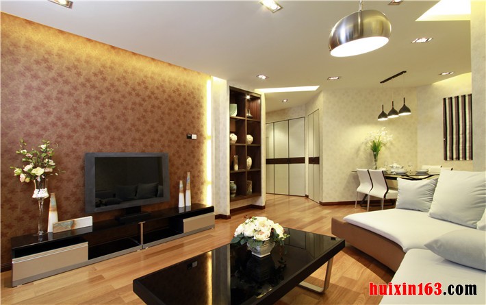 简约风的装修设计,一定要将时尚惬意的一面展现出来,温馨舒适、浪漫动人、唯美时尚是简约风格在人们心中的一种理解与评论,在本案例的设计当中,通过石膏板吊顶的设计将各个空间连接在一起,从而将各功能空间串联起来,实木铺设的地板,个性的电视背景墙,黄色壁纸的铺贴,在通过黄色光晕的衬托,演绎出一种浪漫温馨的感觉,纯白色的沙发布艺,在这个装满时尚气息的环境当中,通过色彩的反差,让其相互衬托、相互点缀,反观餐厅的设计,所占据的空间面积并不是很大,通过设计师独具匠心的设计,让居室显得比较充实,餐桌上一束百合花的添加,更是起到一个锦上添花的效果。