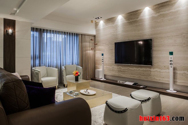 混搭风的装修设计并不是简单的造型设计以及家具搭配,装修出来的效果我们可能发现不了过多的造型,但对于局部的细节处理却有着非常之高的要求,哪怕细小的偏差也可能导致整个空间的布置受到影响,在客厅的设计当中,所展现出来的是一种时尚与雅致,,不管是色彩的搭配还是家具的布置都恰到好处,个性的沙发,色彩的鲜明反差正好起到一个点缀的效果,一张白色的毛绒地毯铺设,将空间装扮得更加温馨浪漫,大理石制作得电视背景墙,更是演绎出一种低调的奢华美感,落地窗的设计搭配上轻质的窗帘,装饰空间的同时也能很好的调节空间的采光效果。