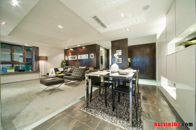 现代简约风格的装修设计展现出来的是一种极简的美感,整个空间看似随意的布置,却是通过设计师独具匠心的布置营造出来的效果,简约风的装修对细节的处理有着很高的要求,即使细小的瑕疵也可能影响整个空间的装修效果,在本案例的设计当中,以白色为整个空间的主色调,局部适当的通过黑色家具来点缀,营造出一种黑白搭配的经典造型,客厅采用的是平顶式的石膏板吊顶,并且开放式的餐厅设计在视觉效果上让整个空间看起来也比较宽阔明亮,没有繁琐复杂的造型约束,更能展现出一种简约风应有的气质与唯美,并且窗台的造型设计也有着很大的看点。