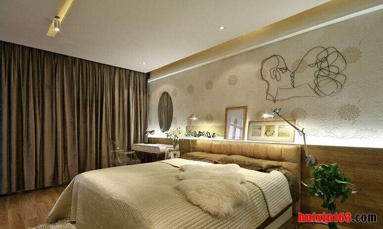 本案例是一个简约风的装修环境,通过超简的装修布置打造出一个甜蜜的二人世界,在客厅的装饰布置当中,采用平顶式的石膏板吊顶,整个吊顶没有繁琐的灯具装饰,通过几盏射灯安装来解决空间的照明问题,在视觉效果上给人一种干净整齐的美感,并且营造在墙面上的灯光也能产生一种若影若现的效果,对于沙发背景墙和电视背景墙都是采用实木上墙的处理方法,不仅让客厅显得比较美观,而且两者还遥相呼应,不管是墙面上的贴花还是沙发背景墙的装饰背景都比较美轮美奂,落地窗的设计,强烈的室外光纤都是空间的一大采光来源,恰到好处的绿植添加更是将客厅的美展现得淋漓尽致。